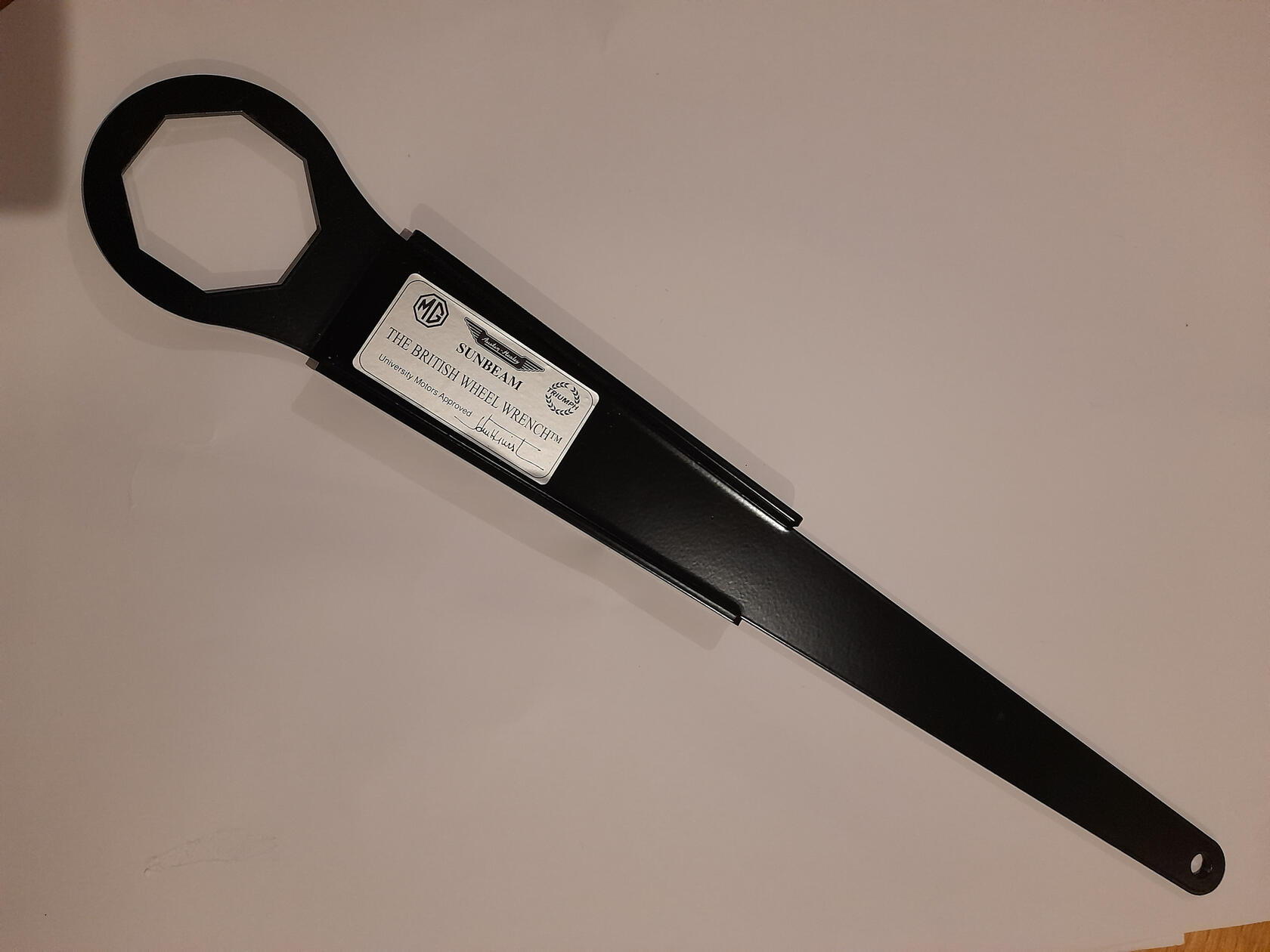 MG & other British Knock off Tool for Octagonal Knock off NutsA superior tool for removing your wheel nuts! Never ding another guard or dent another wheel with the old hammer-and-stubby-tool technique.This tool generates lots of torque, and gives you control -- you can feel how tight your wheel nut is. This tool will remove stubborn nuts your old spanner struggles with. No owner should be without it.Fits MG, Triumph, Austin Healey, and Sunbeam.The tool stores easily in your boot, and is very affordable (much less than the cost of a dented guard repair!). Don't leave home without it!Note: Excessive force should not be used with this tool. It is not designed for stuck KO's etc. Do not stand/jump on spanner.Wrench measures 70 mm or 2.75" across the flats.$95.00 each & can be posted to Australian addresses.