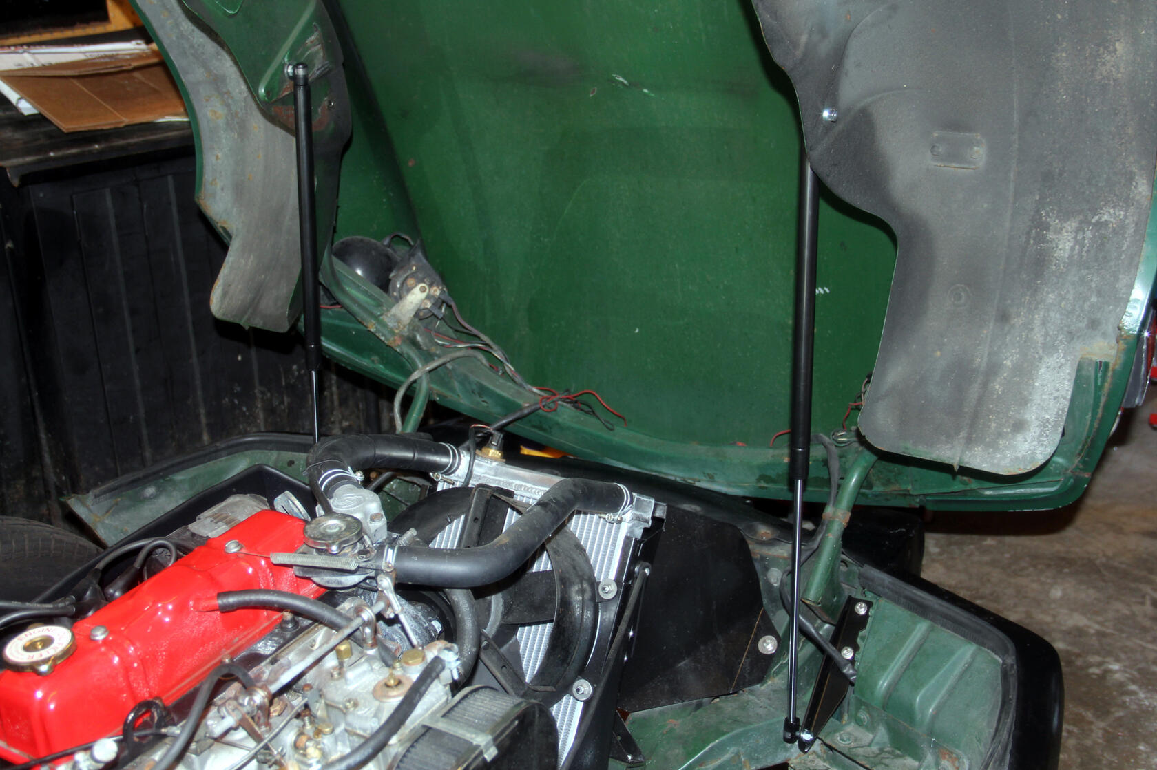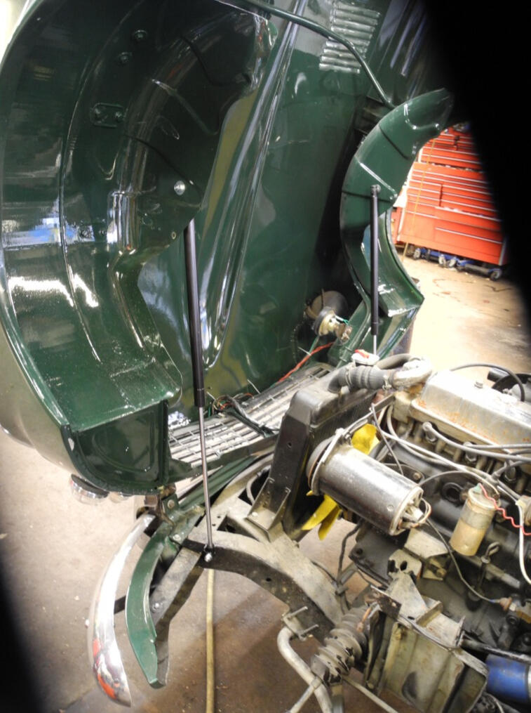 This kit makes opening the bonnet of your Spitfire & GT6 so much easier. Just received from the US manufacturer.Two powerful gas springs will now make lifting your bonnet a thing of ease! The initial lifting force is substantially reduced, and after opening only a portion, the springs take over completely and raise your bonnet Fully Open.Plus your bonnet now has Even Support, and to reduce the risk of it crashing down.Lowering the bonnet is so much better, too! The weight does not build and build like before, but instead you "pull" the bonnet down and then lower it for only the last portion while the springs help counterbalance the weight!This cleverly engineered design requires NO DRILLING. Custom fabricated brackets and ball studs fasten to existing geometry. Gas Springs have even been custom made for just this application--they are not "off the shelf."Treat yourself and your Spitfire or GT6 to a little luxury!$125.00 plus postage